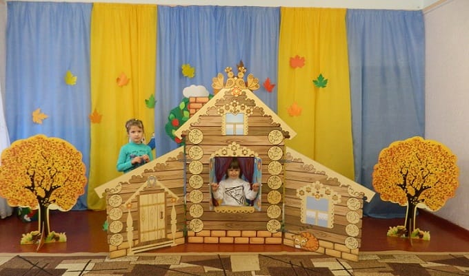 Осенние утренники – это всегда яркие и красочные праздники урожая, которые требуют соответствующего оформления. Как правило, используются деревья, украшенные желтой листвой, кусты, пни, грибы и т.д. Также уместным при проведении этого праздника будет оформление в русском стиле.