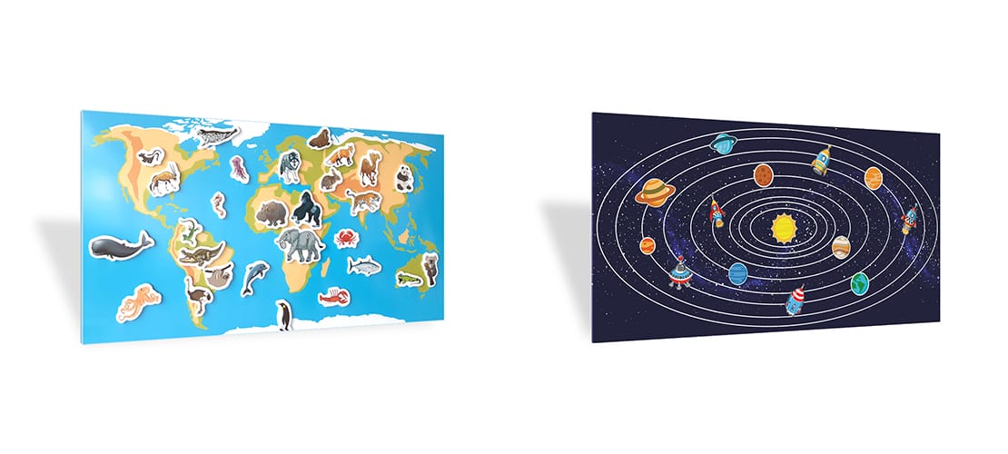 Инновационное предложение для оформления учебных учреждений - магнитные панно. Преимущество таких панно в том, что они сделаны из магнитного винила и их можно менять в соответствии с учебным планом, темой урока, сезоном и т.д.