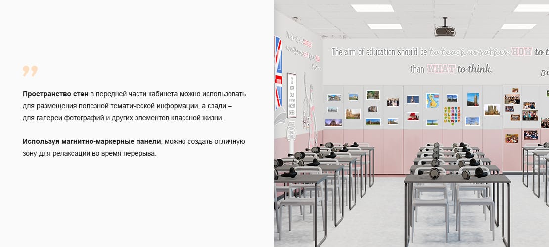 Каждый элемент пространства учебного заведение имеет свое влияние на детей, а также несет свой функционал, включая и стены.