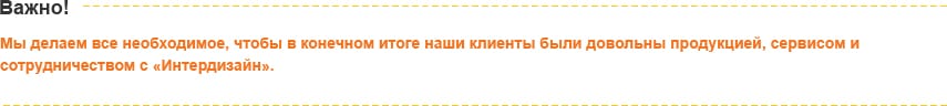 На весь ассортимент представленный компанией «Интердизайн» мы предоставляем гарантию сроком на 12 месяцев.