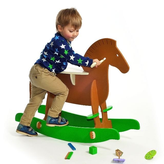 Отличный вариант для дошкольных образовательных учреждений: прочная и безопасная для детей благодаря большому радиусу полозьев и ограничителям по краям. Материал — березовая фанера.