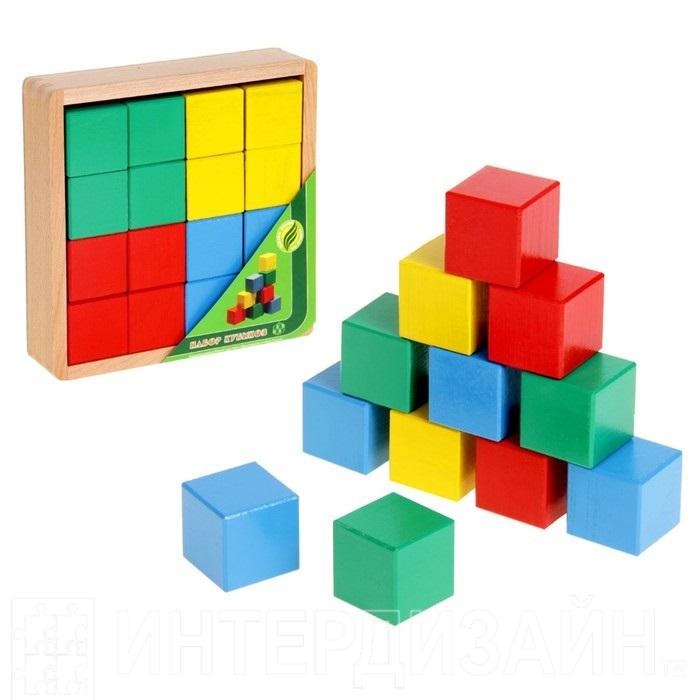 Кубики цветные, 16 деталей, в деревянной коробке - Описание