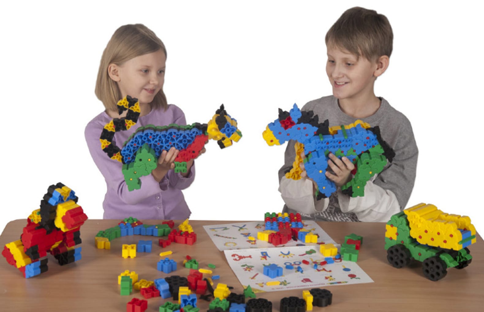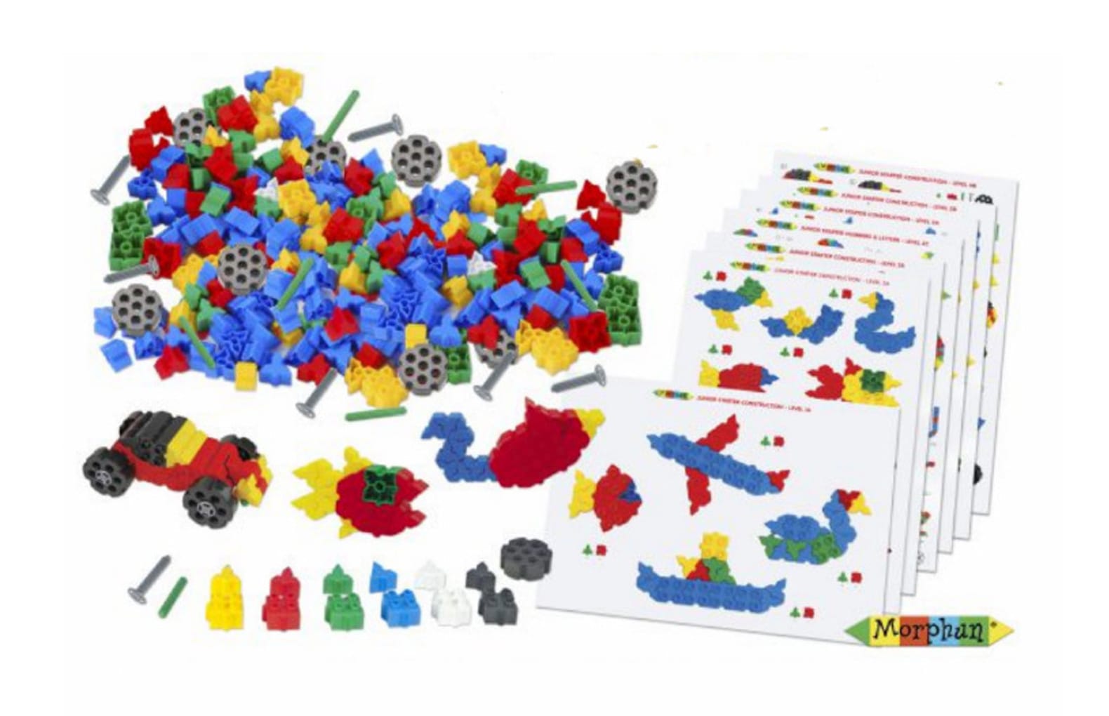 В комплекте:600 деталей в виде квадратов и треугольников, колеса, соединительные, направляющие и дополнительные элементы; инструкции по сборке