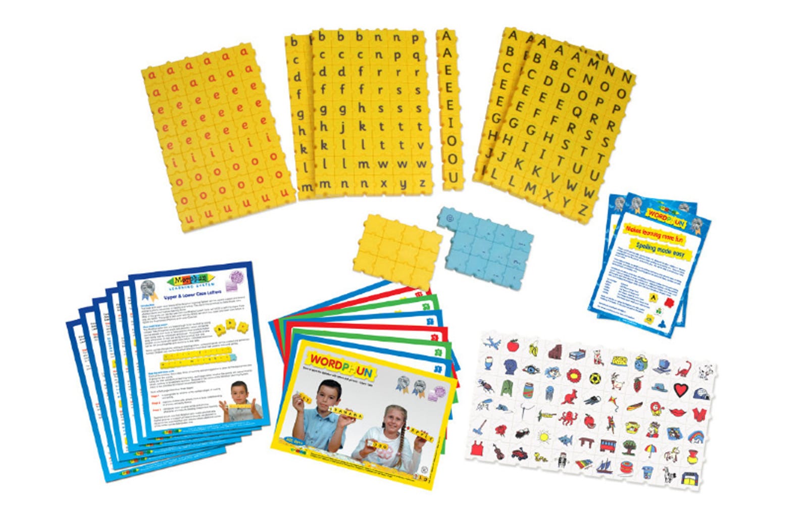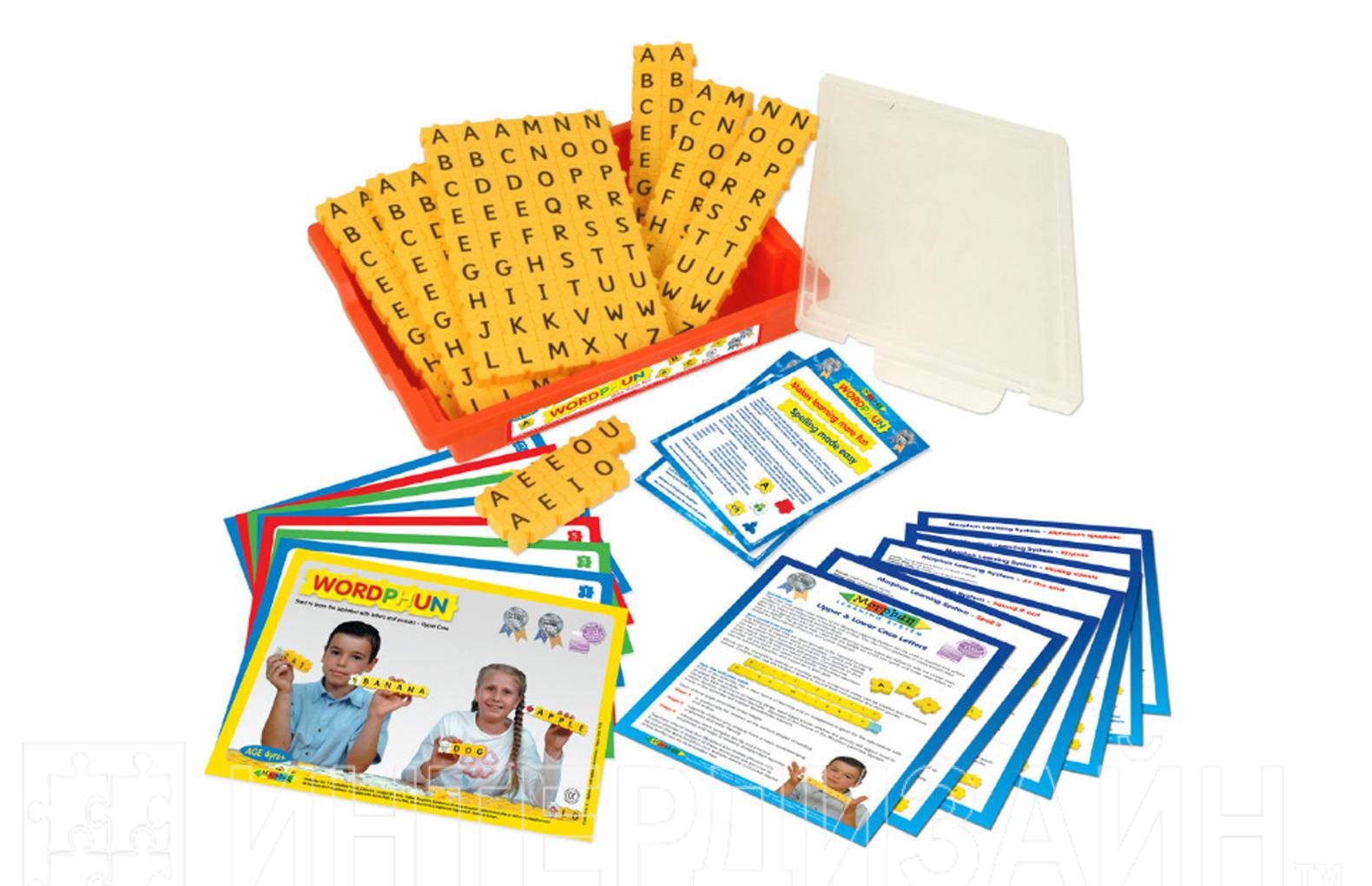 Конструктор используется для увлекательных занятий английским языком и чтением. Состоит из деталей желтого цвета с нанесенными буквами и знаками препинания, соединяемых особым способом, исключающим неправильное расположение букв. Соединение крепко держит детали между собой, что очень удобно при составлении слов или предложений. Собранное слово ребенок может не только положить на стол (парту), но и взять в руки и показать педагогу, который сразу видит результат и если нужно исправит ошибку. Цветовое выделение букв дает возможность ребенку быстрее найти гласные (красный цвет), согласные (синий цвет) и заглавные буквы (черный цвет). Конструктор помогает выучить буквы, собирать из букв слоги, а затем фразы и предложения, осваивать правила орфографии и пунктуации. Комплекс заданий, упражнений и игр дает возможность значительно расширить словарный запас, развить память, речевые навыки, воображение, мышление детей.