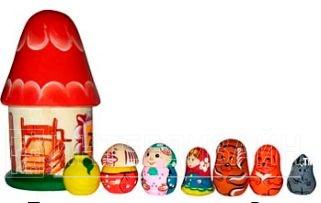 Пальчиковый театр в домике "Репка" - это набор из домика со съемной крышей и 7 маленьких деревянных персонажей сказки «Репка». Домик состоит из дерева, ярко раскрашен в традиционные русских цвета.