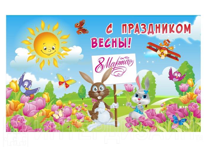Подарите праздничное настроение женскому полу, украсив актовый зал или холл праздничным баннером "С праздником Весны"