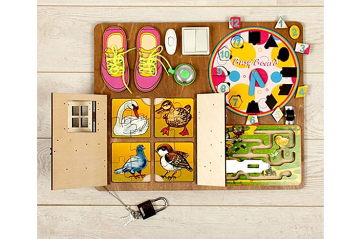 Бизиборд - занимательная развивающая доска для ребенка. Дословно Бизиборд можно перевести как доска, чтобы занять малыша. Действительно, различные мелкие предметы и яркое оформление могут увлечь ребенка надолго. Игрушка обеспечивает всестороннее развитие ребёнка и помогает родителям уберечь его от травмоопасных ситуаций на этапе освоения окружающего мира.