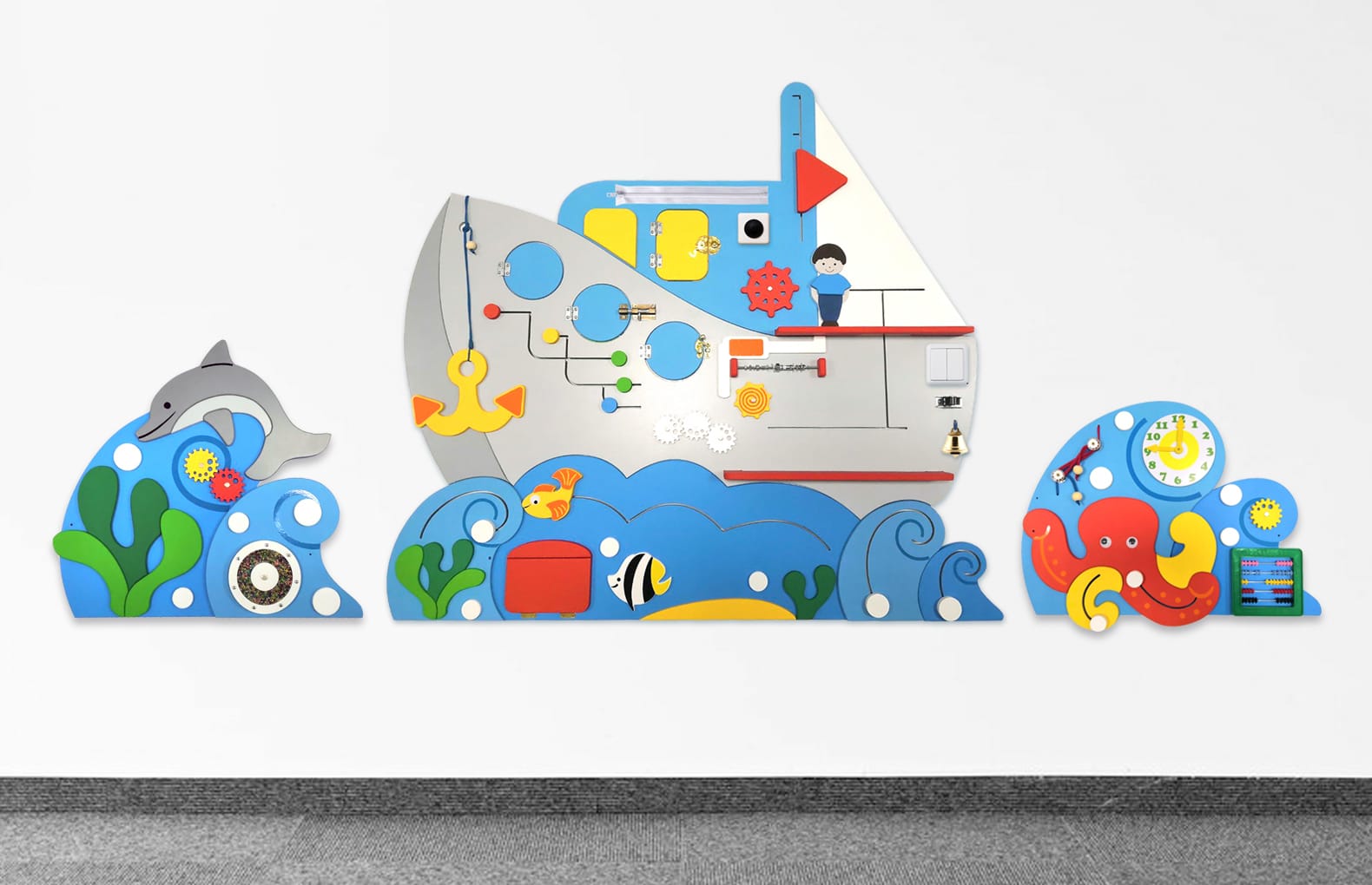 Бизиборд "Дельфин" поможет развить мелкую моторику, а также станет интерактивным элементом декора.
