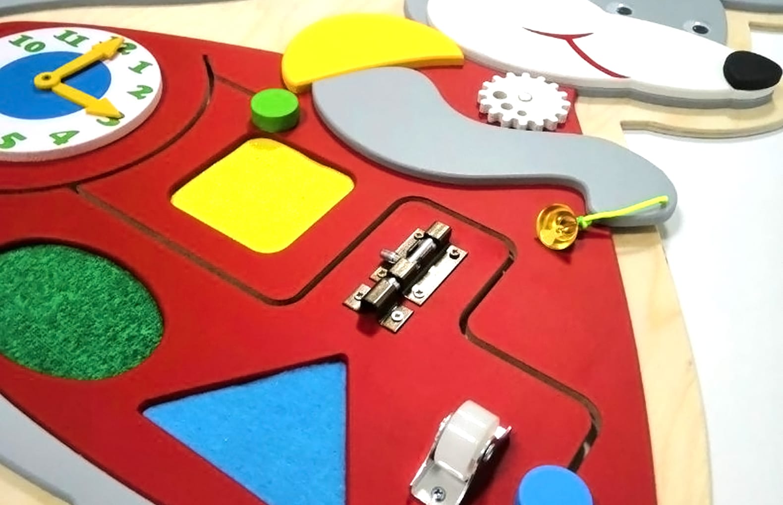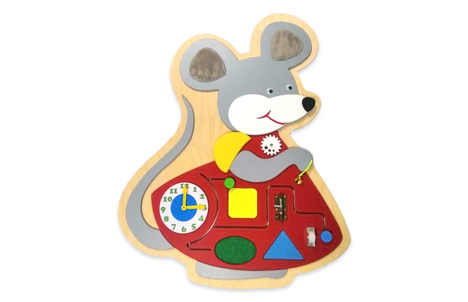 Бизиборд «Мышка-норушка» оснащен множеством подвижных деталей, способствующих развитию мелкой моторики и логического мышления. Данный бизиборд также поможет ребенку освоить навык понимания времени по часам.