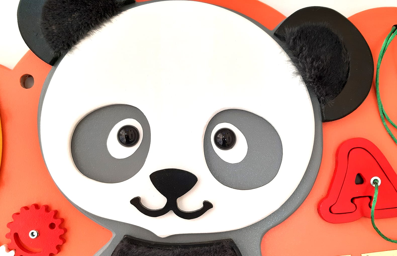 Бизиборд "Панда" развивает мелкую моторику, служит игровым элементом и просто создает отличное настроение в детском саду!