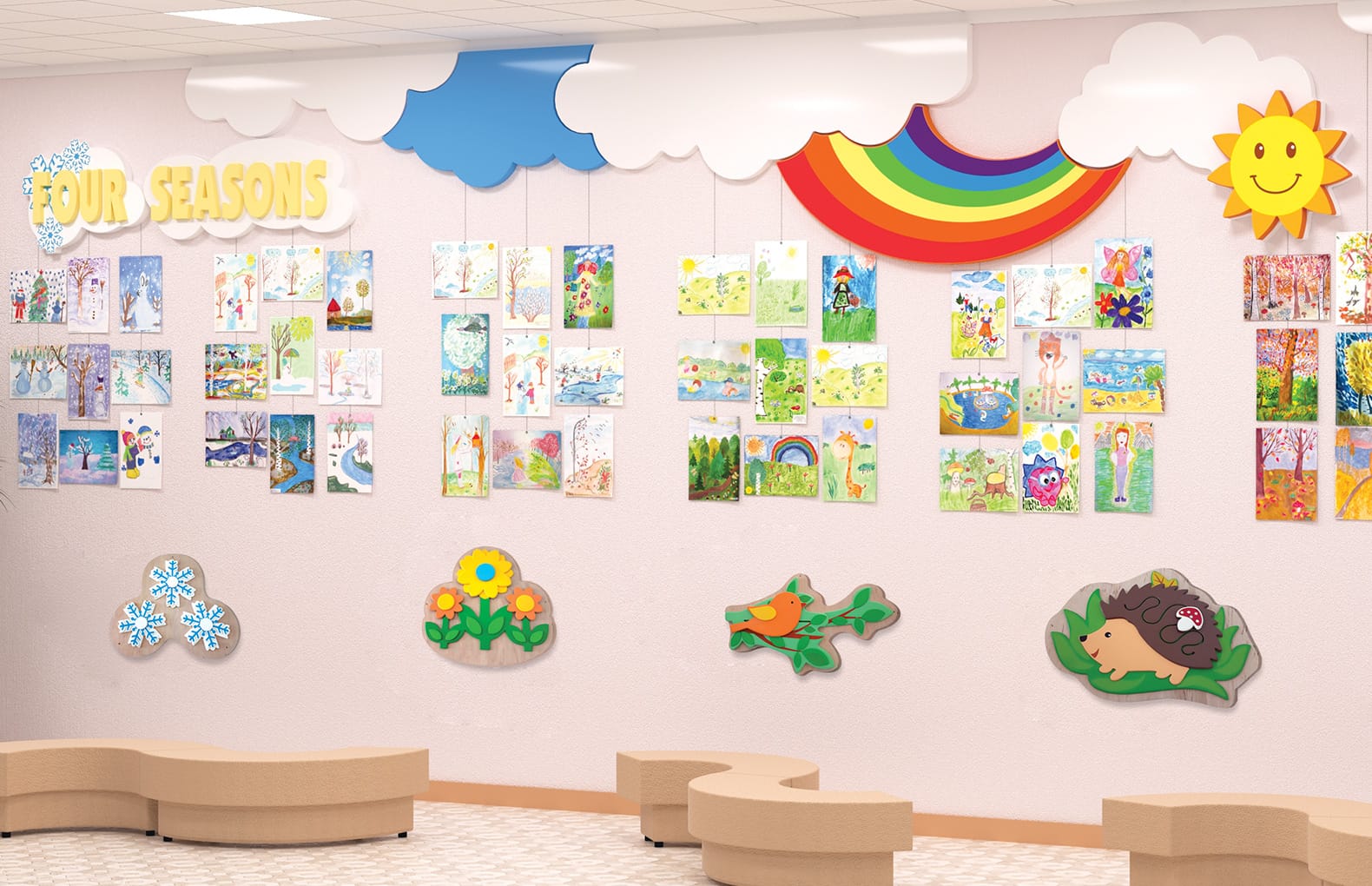Такой бизиборд создан как функциональный декоративный элемент детского сада. Яркий и приятных по своему дизайну бизиборд очень понятный и легкий для восприятия детей - именно по этому детки с радостью увлекаются игрой и в то же время развивают мелкую моторику. Крутящиеся элементы увлекают и завораживают деток.