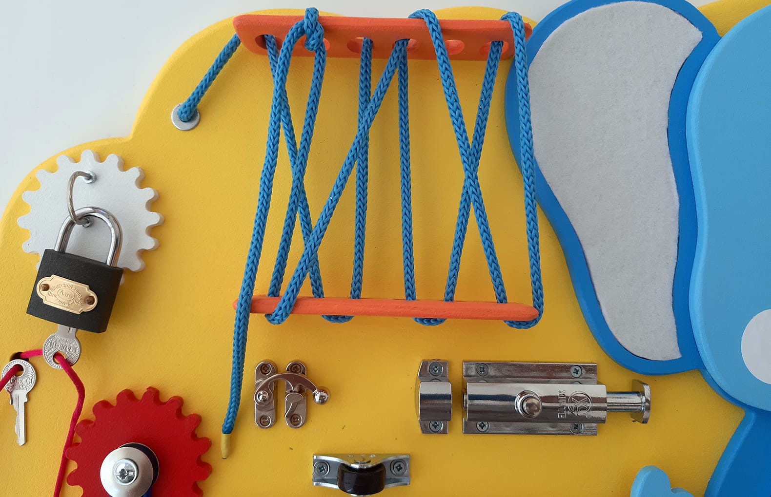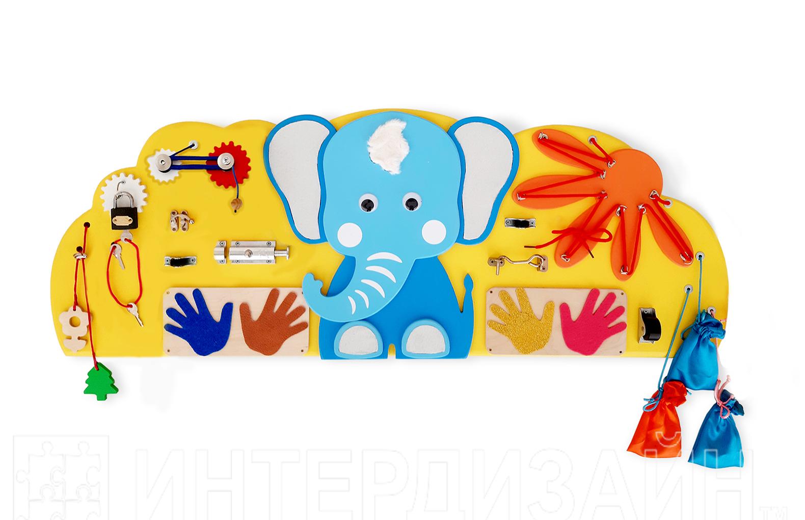 Бизиборд "Слоник" развивает мелкую моторику, служит игровым элементом и просто создает отличное настроение в детском саду!