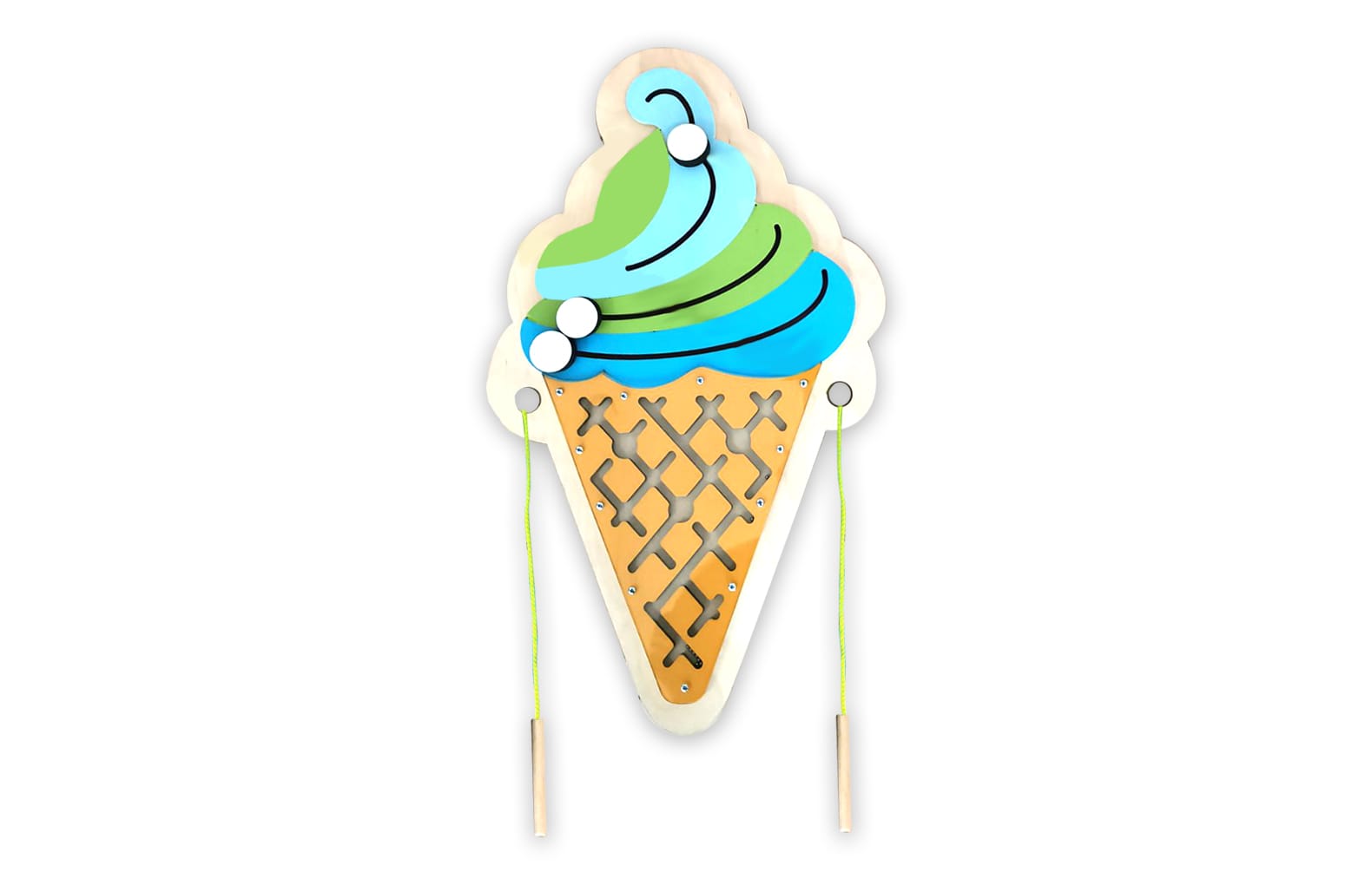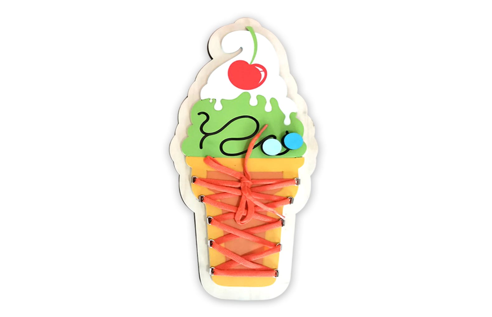 В комплекте с бизибордом Фабрика мороженого разработаны бизиборды «Мороженое» с магнитным лабиринтом (подготовка руки к письму) и Мороженое с вишенкой (шнуровка).