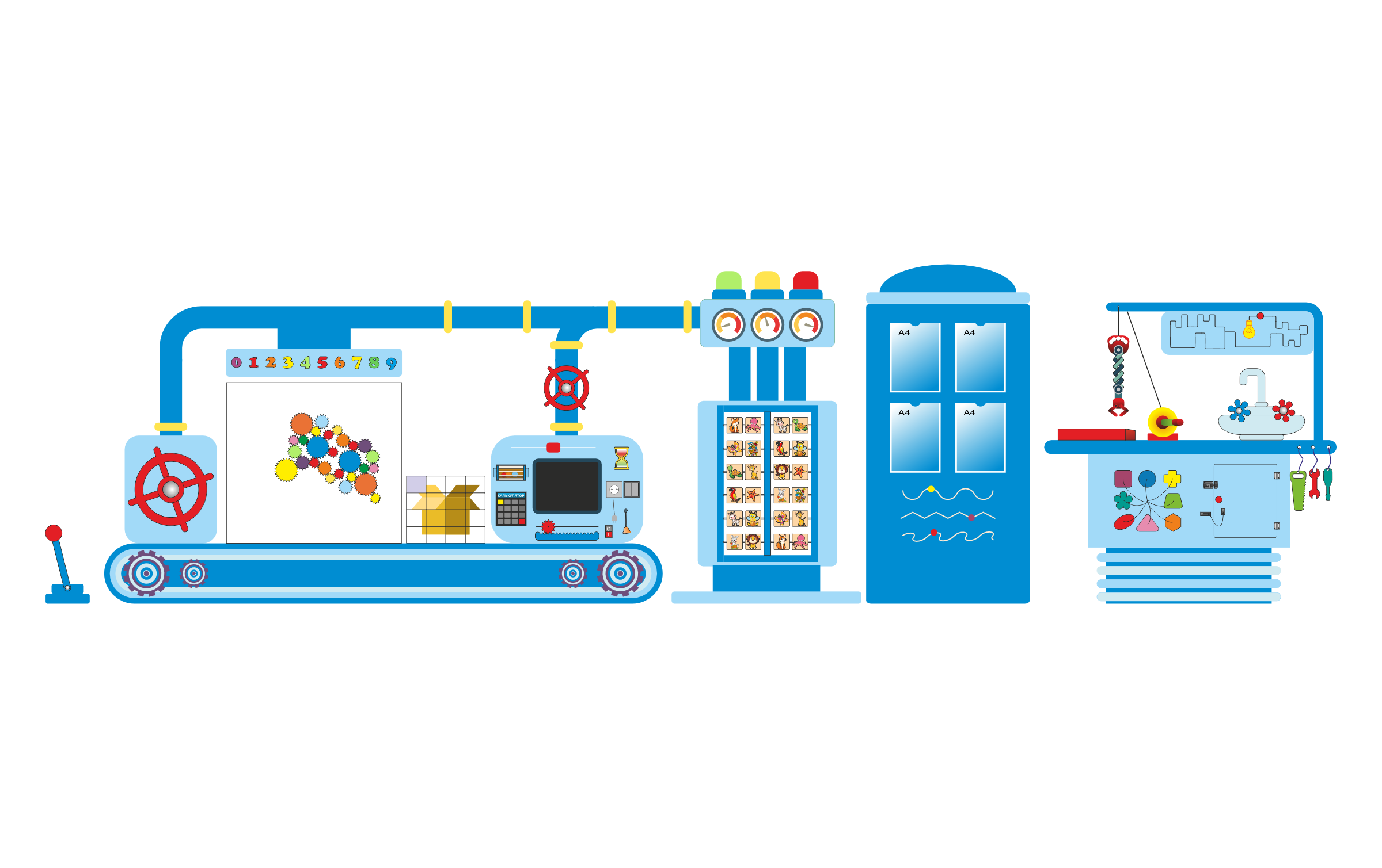 Панель «Конвейер» - основная панель для развития моторики, включает: