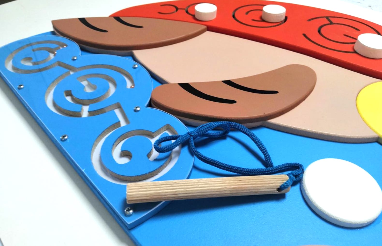 Яркие бизиборды производятся из экологичных, приятных на ощупь материалов для деток дошкольного возраста - натуральная березовая фанера, МДФ, безопасная акриловая краска.