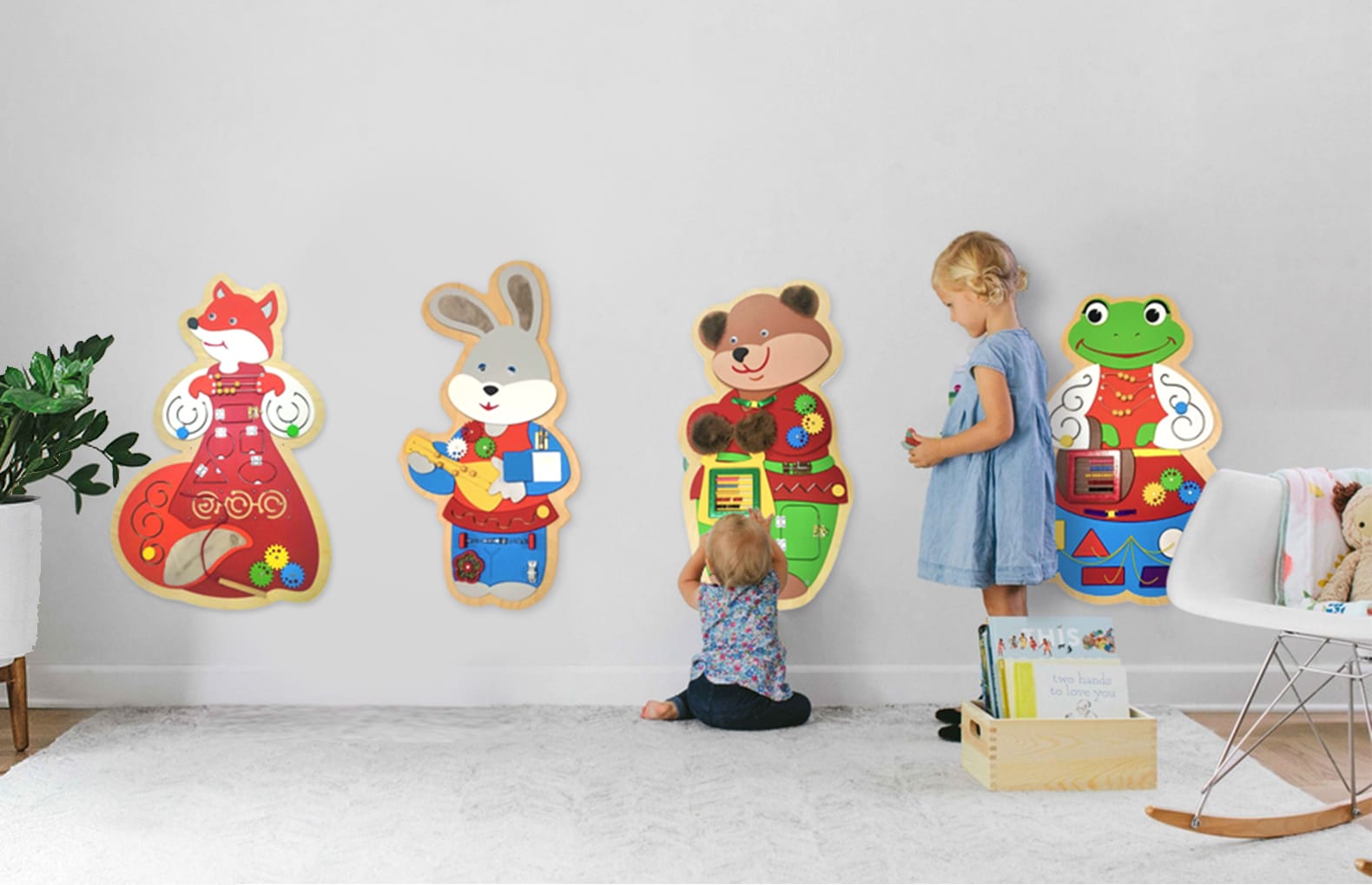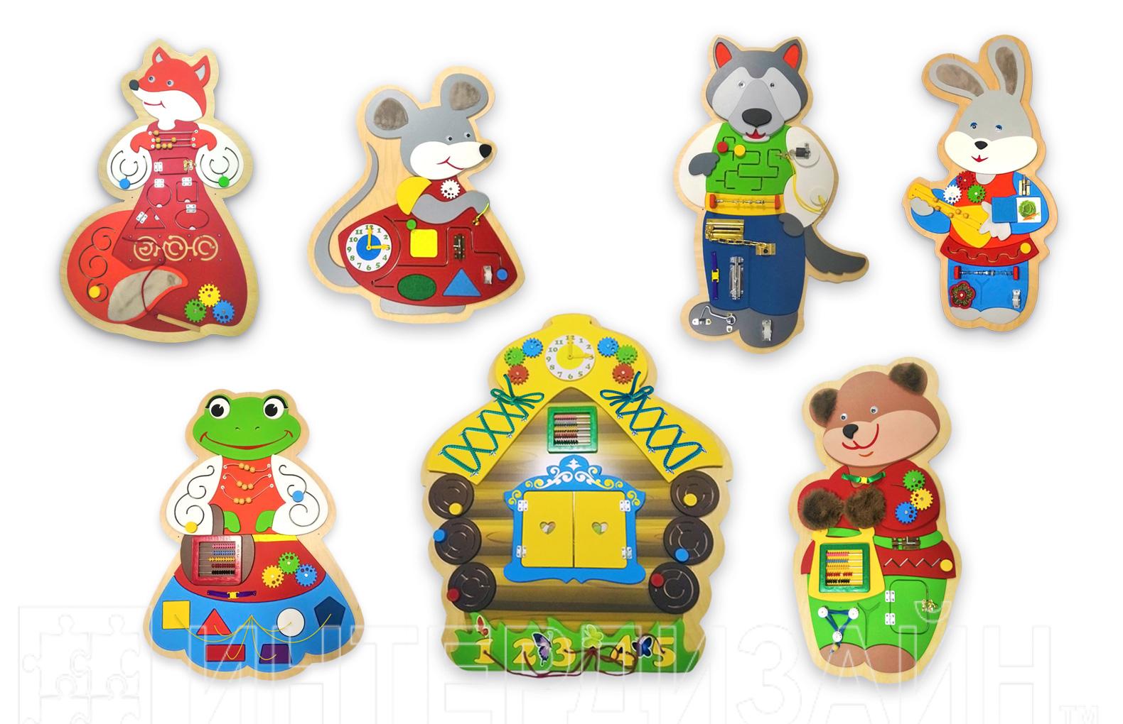 Композиция бизибордов «Теремок» разработана для детских садов и развлекательных центров.