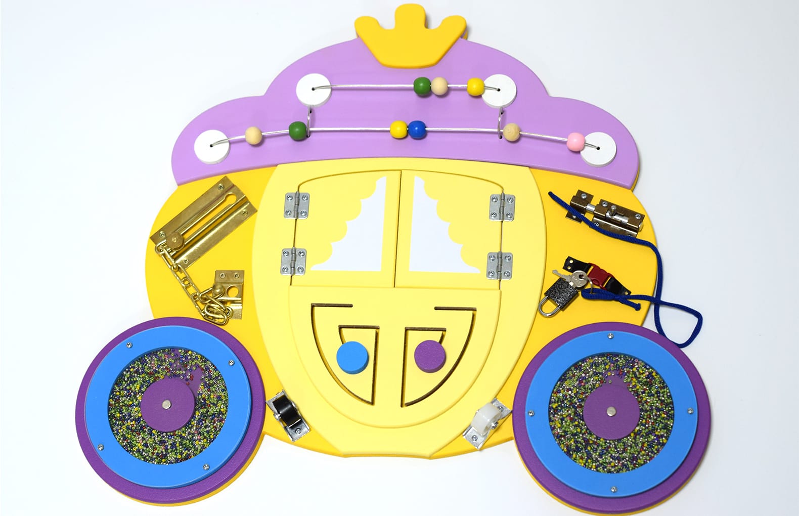 Совместное пользование комплекта бизибордов поможет детям в развитии коммуникативных навыков.