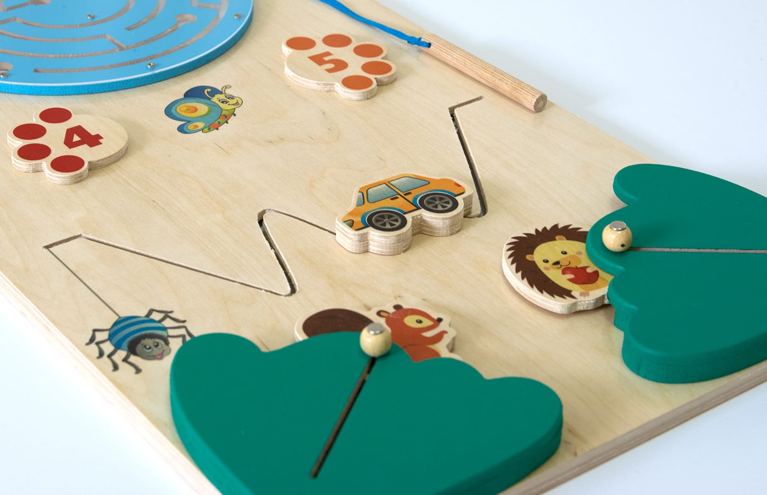 В комплекте:5 бизибордов, фурнитура для крепления к стене