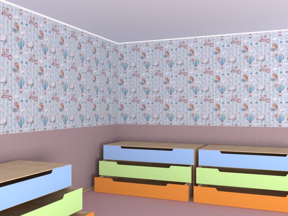 Данные обои – бумажное полотно, ширина которого 0,53 м, идеально подойдут для оформления любой из зон в детском саду (игровой, спальной, обеденной и др.).