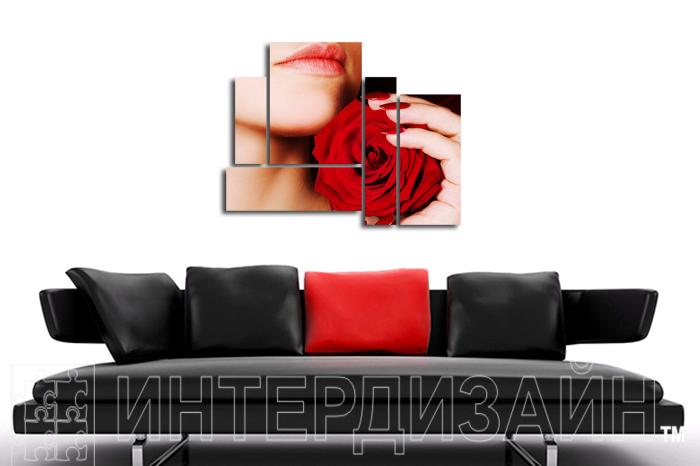 Модульная картина "Девушка и алая роза" имея страстный характер отлично разместится в вашей спальне.