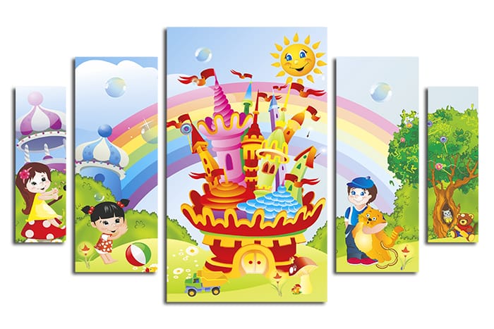 Модульная картина "Разноцветный замок и радуга" - Описание