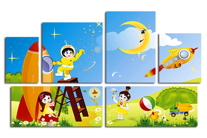 Яркая и красочная модульная картина отлично впишется в интерьер детского сада или детской комнаты.