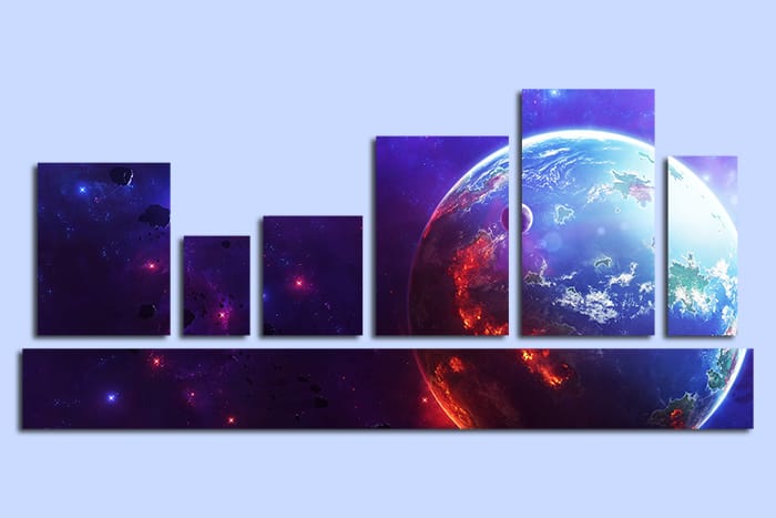 Космические модульные картины наполнят помещение особой энергетикой. При условии правильного подбора сюжета, картина отлично будет смотреться в любом интерьере.