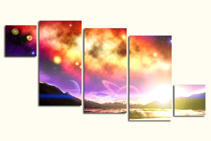 Космические модульные картины наполнят помещение особой энергетикой. При условии правильного подбора сюжета, картина отлично будет смотреться в любом интерьере.