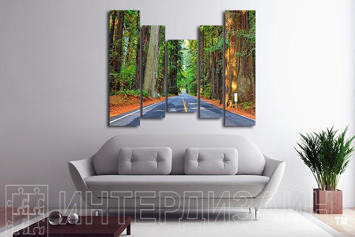 Модульная картина "Дорога сквозь лес" - Описание
