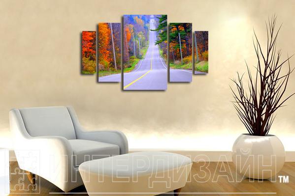 Модульная картина "Дорога в осеннем лесу" - Описание