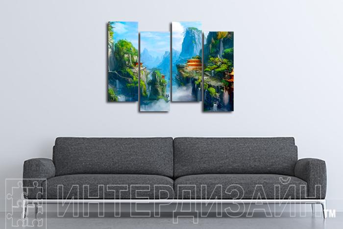 Модульная картина "Китайские домики на скалах" - Описание
