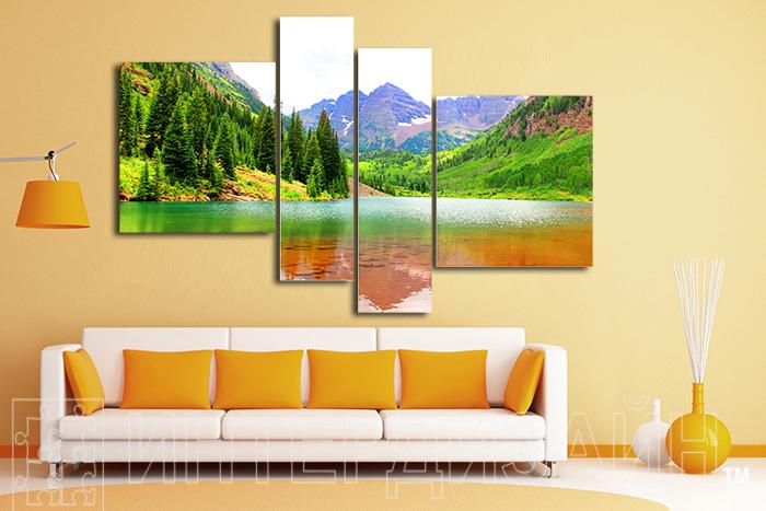 Картины, которые изображают природу гор, лесов, морей, озер и водопадов, наполняют интерьер уютом и спокойствием. Отлично подходят для интерьера спальни, гостиной и детской.