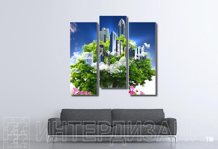 Модульная картина "Природа и город" - Описание