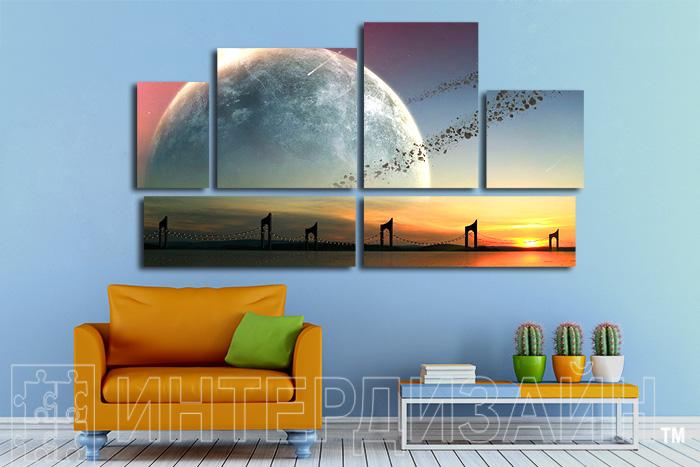 Модульная картина "Закат и планета" - Описание