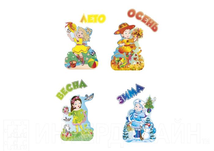 В комплект входят 8 элементов - 4 времени год и 4 названия. Элементы напечатаны на самоклеющейся пленке с защитой от ультрафиолета.