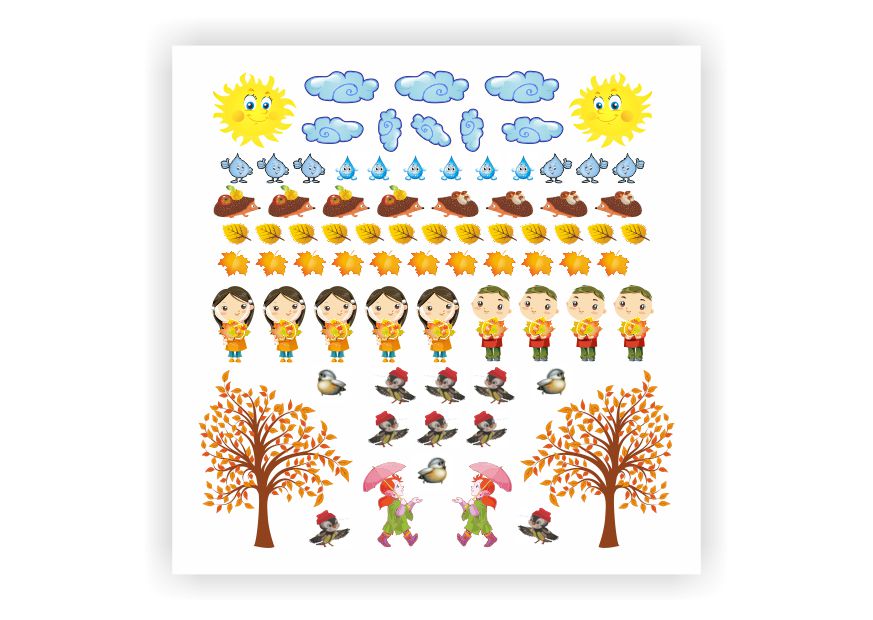 Набор наклеек "Осень" - с яркими наклейками можно украшать интерьер любых помещений в праздник осени. Вас порадуют разноцветные листья, облачки, деревья, дети и солнышка.