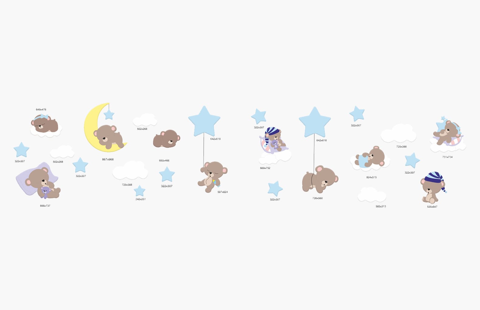 Комплект декораций для спальни "Мишки" 9 метров - Описание