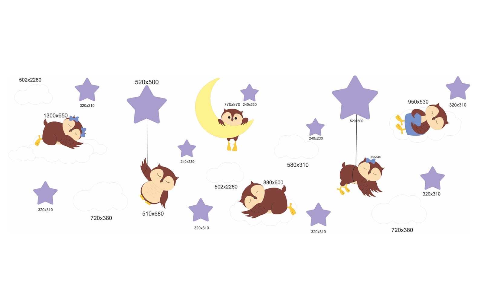 Комплект декораций для спальни "Совята", 6 метров - Описание