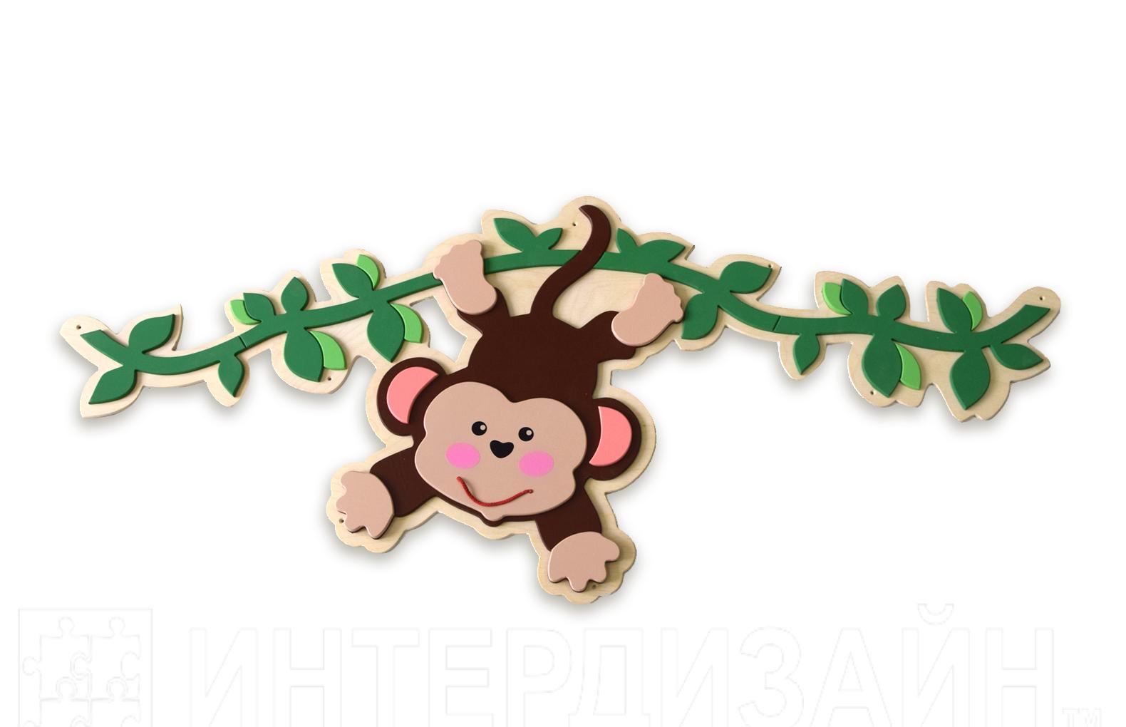 Декорация "Обезьянка" отлично подойдет для оформления раздевалок, коридоров и детских садов, а также для залов ожидания и кабинетов врачей или детских комнат.