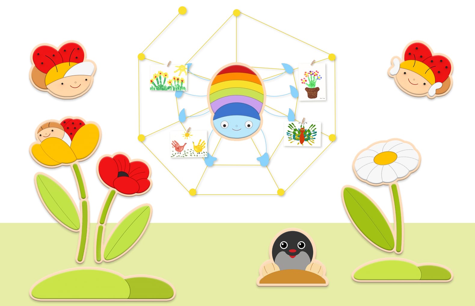 Один из самых популярных персонажей у детей дошкольного возраста - это божья коровка. Дети часто изображают этого жучка на своих рисунках, так как божью коровку легко рисовать. Данная декорация поможет детям разнообразить способы ее изображения.