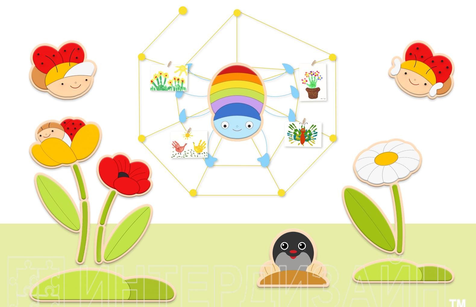 Декорации из коллекции "На лугу" станут не только украшением помещения, но и отличным наглядным материалом для изучения разных растений и насекомых.