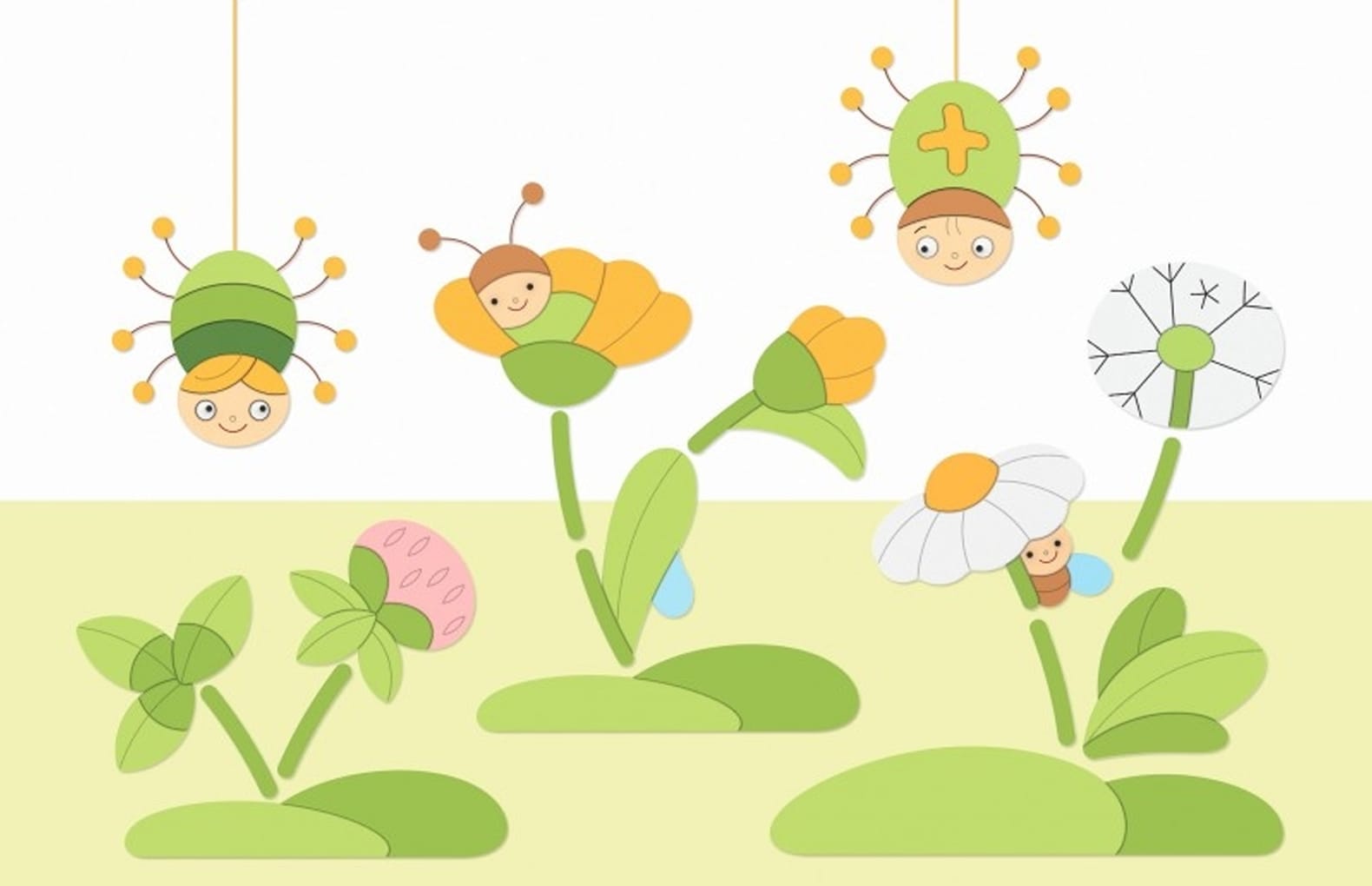 Декорации из коллекции "На лугу" станут не только украшением помещения, но и отличным наглядным материалом для изучения разных растений и насекомых.