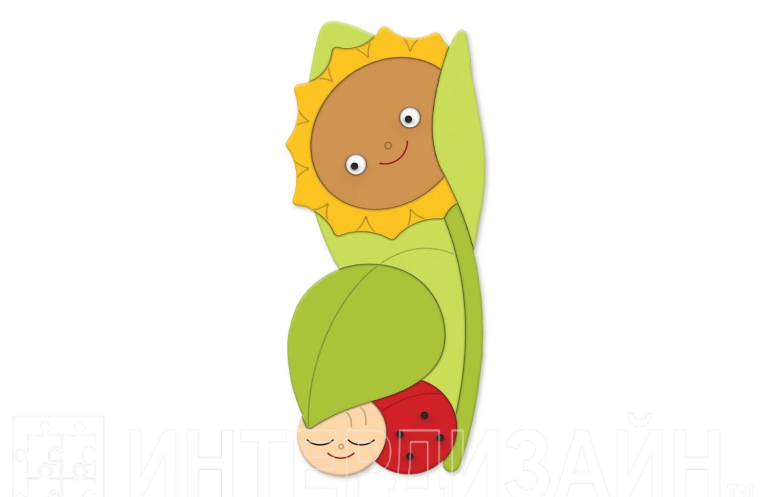 Милый образ подсолнушка, который защищает спящего жучка, создаст умиротворяющее настроение в спальном помещении.
