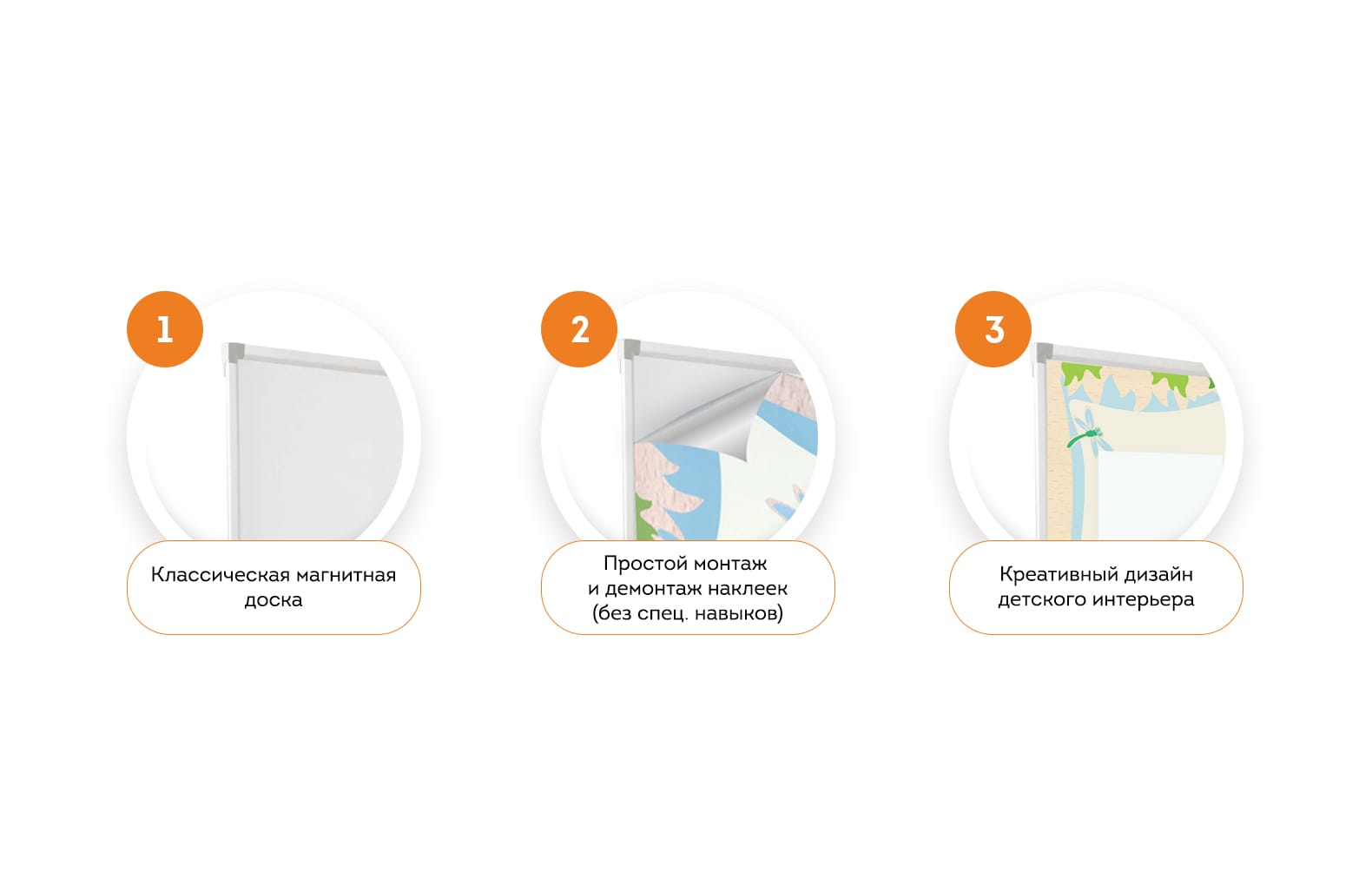 При помощи наших наклеек Вы можете оформить любую магнитную доску, сделать ее детской, привлекательной, тематической!