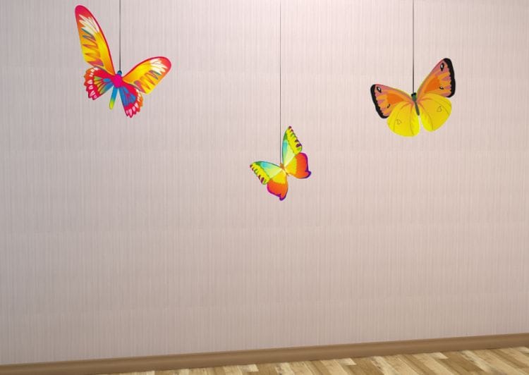 Декоративный элемент "Бабочка" для украшения интерьера музыкального зала и проведения утренников к восьмому марта в детском саду. Благодаря специальному креплению декорация может быть как размещена на стене, так и подвешена к потолку в любой точке комнаты.