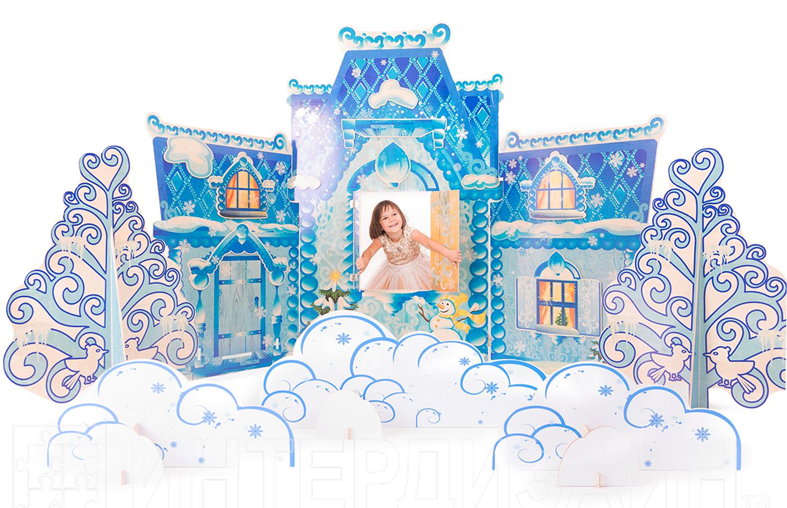 Размеры:Двусторонний Дом - 298х179,5 см, Ледяная ель - 75х100 см, Сугроб - 1000х400мм, Сугробы - 700х300 мм