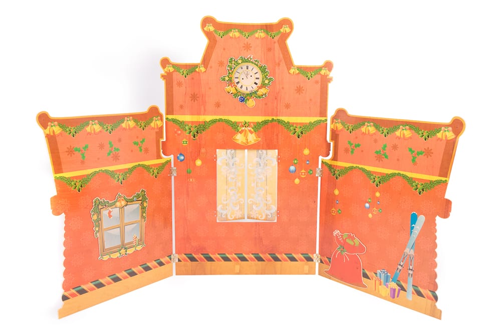 Центральная часть композиции - функциональный двухсторонний дом, с одной стороны представлена внешняя сторона, с другой - внутренняя. Ставни дома открываются, из окошка можно выглядывать и использовать как ширму для кукольного театра.