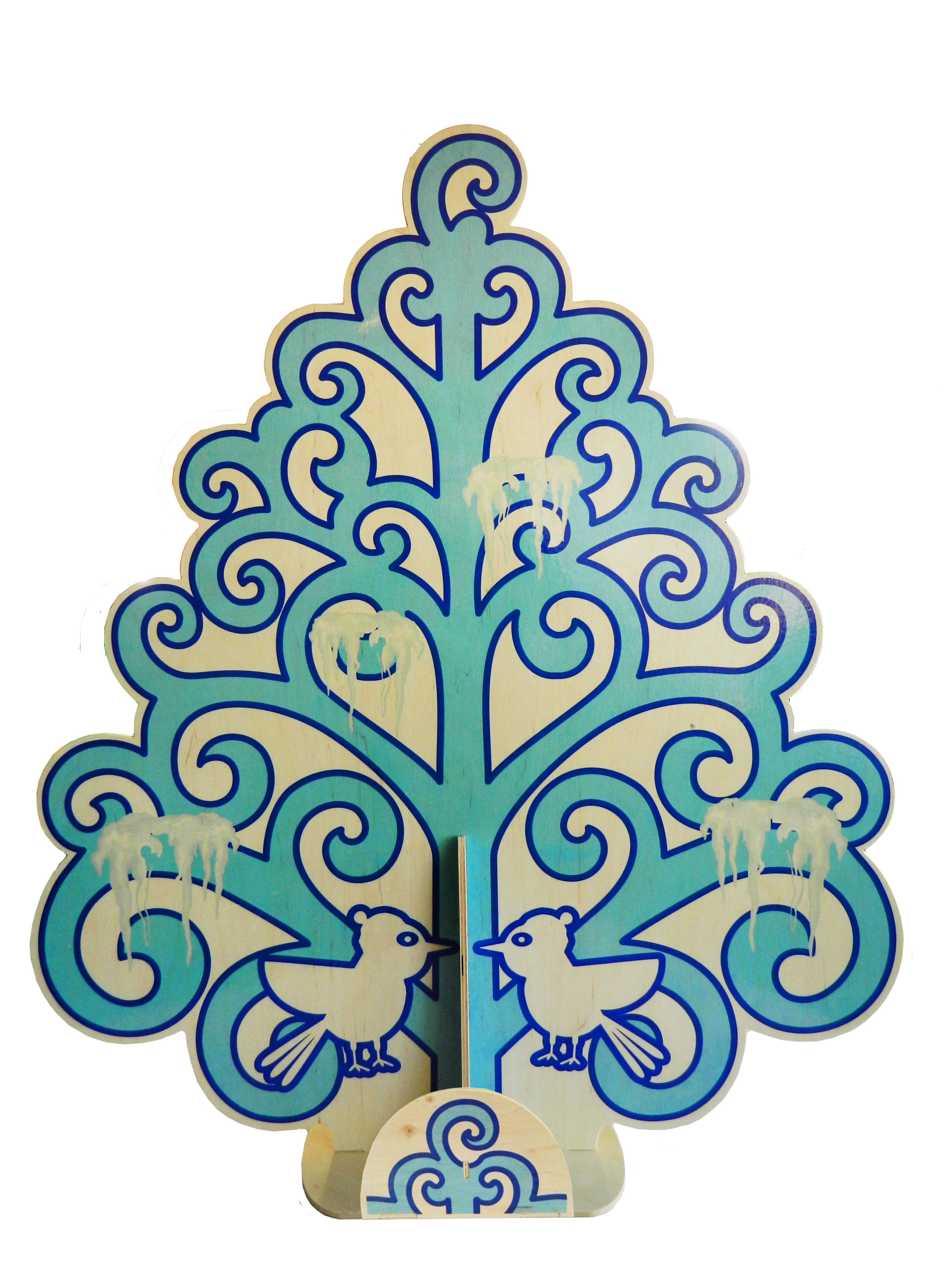 Ели в наборе двухсторонние. Одна сторона зимняя, вторая - летняя, то есть Вы сможете использовать декорации для любых сезонных утренников.