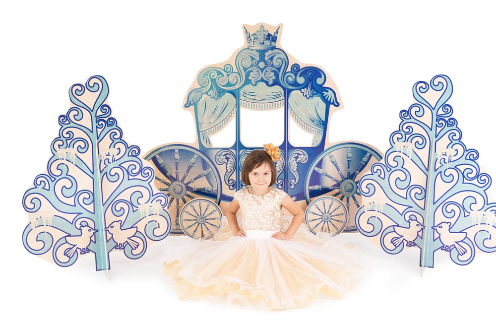 В комплекте :Ледяная карета , размер 155,5 см х 120 см, подставка под декорацию (2 шт)