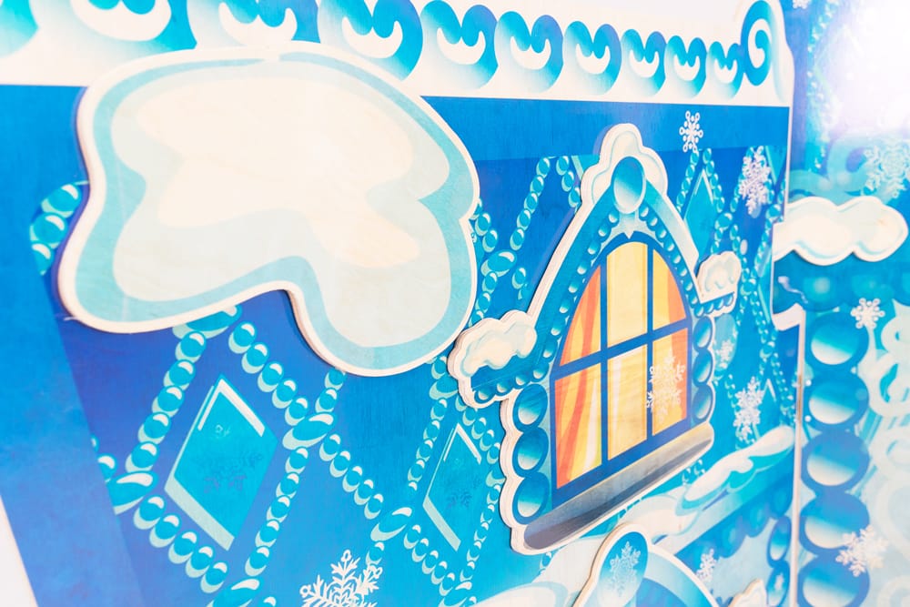 У дома есть отличительная особенность! С обратной стороны - декорация представляет собой внутреннюю часть дома! Настоящий дом Деда Мороза или Санта-Клауса!
